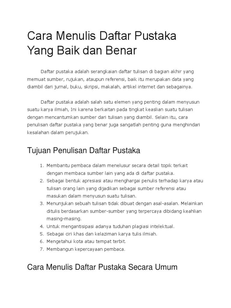 Cara Menulis Daftar Pustaka Yang Baik Dan Benar Pdf