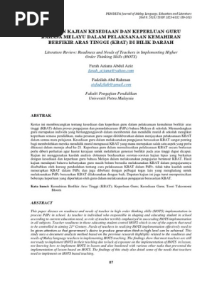Pdf Tahap Pemahaman Dan Kesediaan Pelaksanaan Kemahiran Guru Pendidikan Islam Terhadap Penerapan Kemahiran Berfikir Aras Tinggi Kbat Dalam Pengajaran Di Negeri Selangor